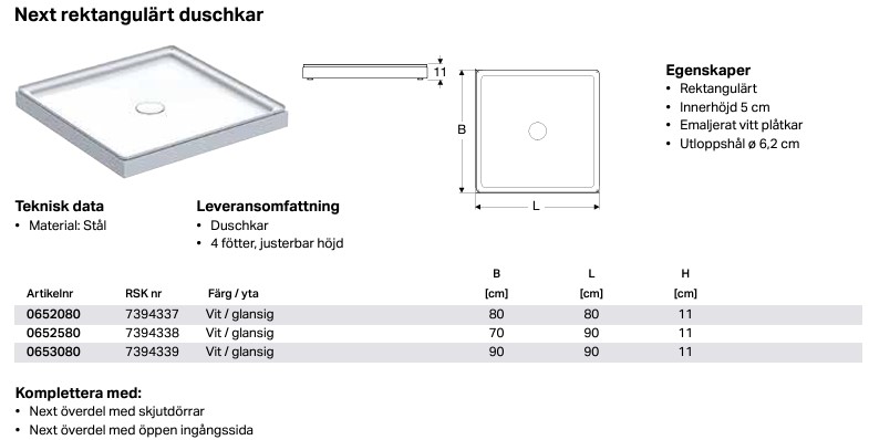 Vitemaljerat stålkar för Next duschkabin. 4 ställbara fötter.