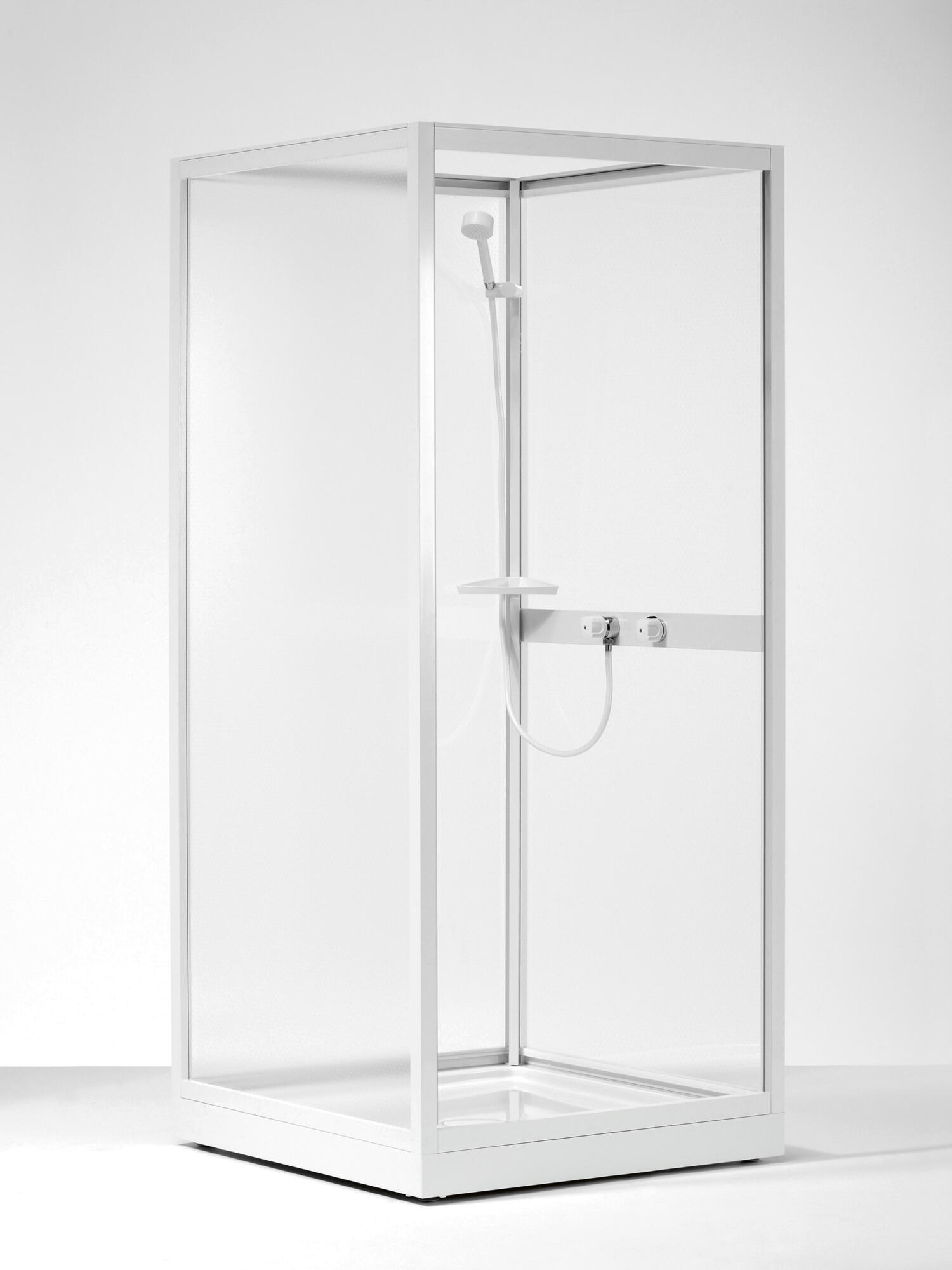 Med Next får du en hållbar duschkabin med enkel stilren design som utstrålar kvalitet och med genomtänkta detaljer: En duscharmatur praktiskt placerad i hörnet, ett kabinkar med frontplåt och släta profiler med dolda tätningslister, ingång med lågt insteg och ställbara ben. Kabinen finns även med vita bakstycken för att dölja väggen och eventuella rör.